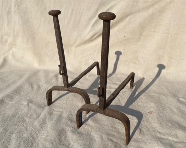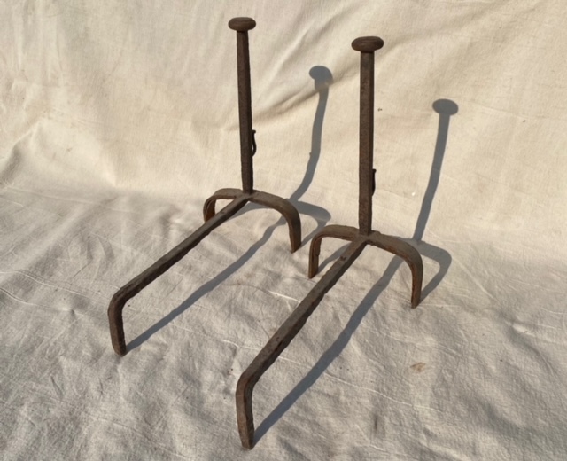 19th century metal andirons were traditionally placed inside a fireplace, to which the logs to burn would be placed atop them. The space beneath the logs and length of the legs allows for the fire to have “breathing space” underneath to circulate air. This is an old practice but still holds up today. Andirons are a great addition to your fireplace to bring a practical piece of history into your home.